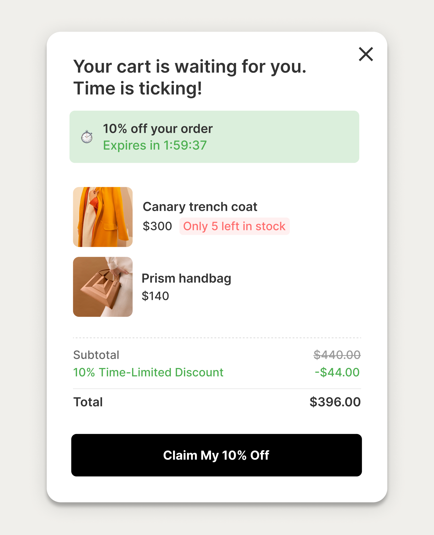 Write copy that addresses common hesitations (shipping costs, trust concerns, pricing). The AI handles when and to whom it's shown; you handle the messaging that resonates with your brand: