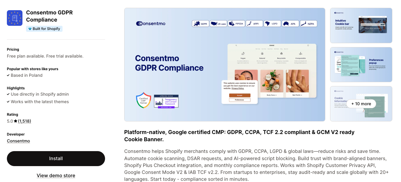 This is a must-have app for GDPR/CCPA and cookie management popups. If your store ships to the EU, California, Canada, Brazil, and/or Japan, you need to ensure compliance with these data regulations.