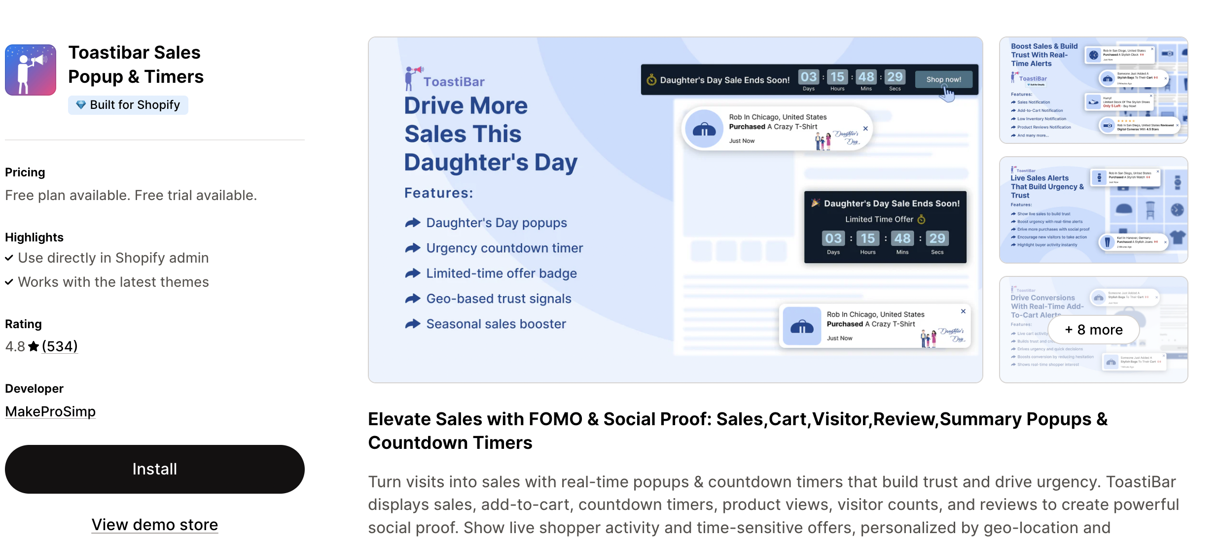Free for sales popups only. You’ll need to pay $6.99 per month to get all other types of notifications.