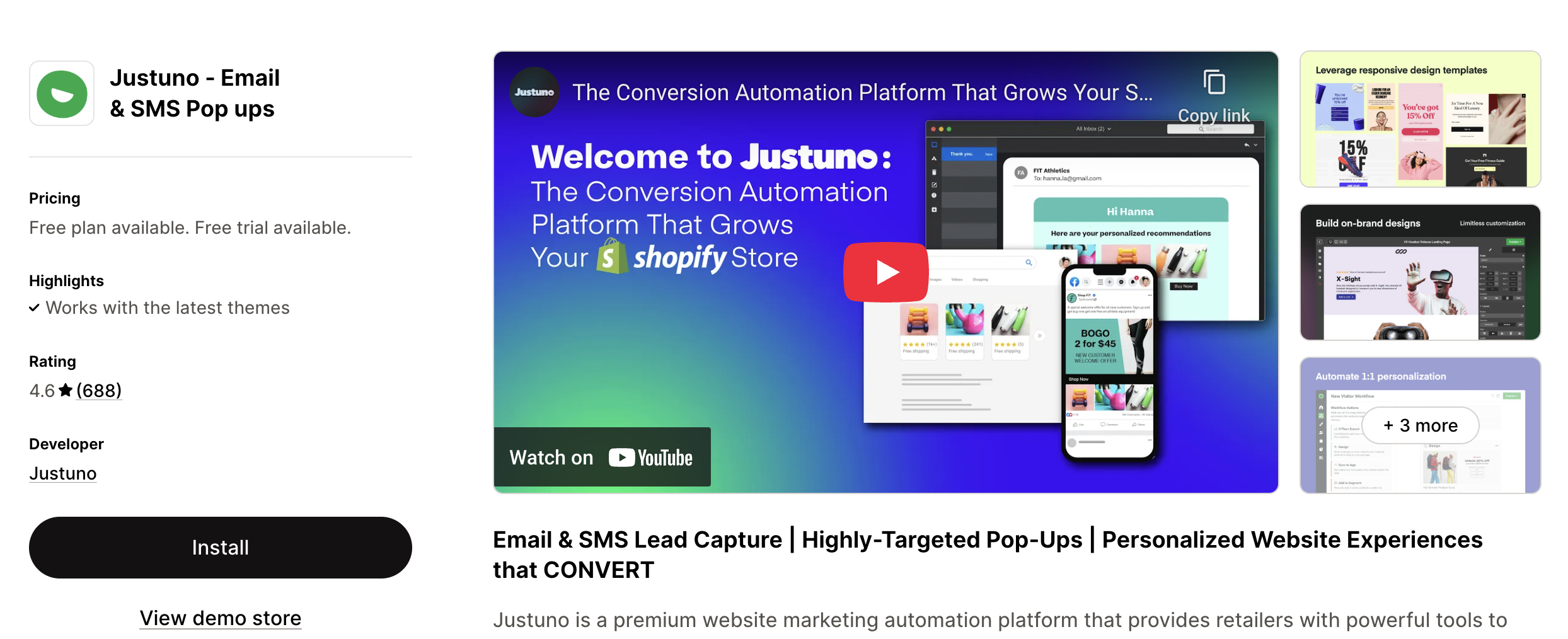 Justuno is an popup that goes beyond basic email capture with advanced targeting, personalization, and the ability to collect both email and SMS subscribers. The platform is popular among small and fast-growing stores that want more control over the way they engage visitors.