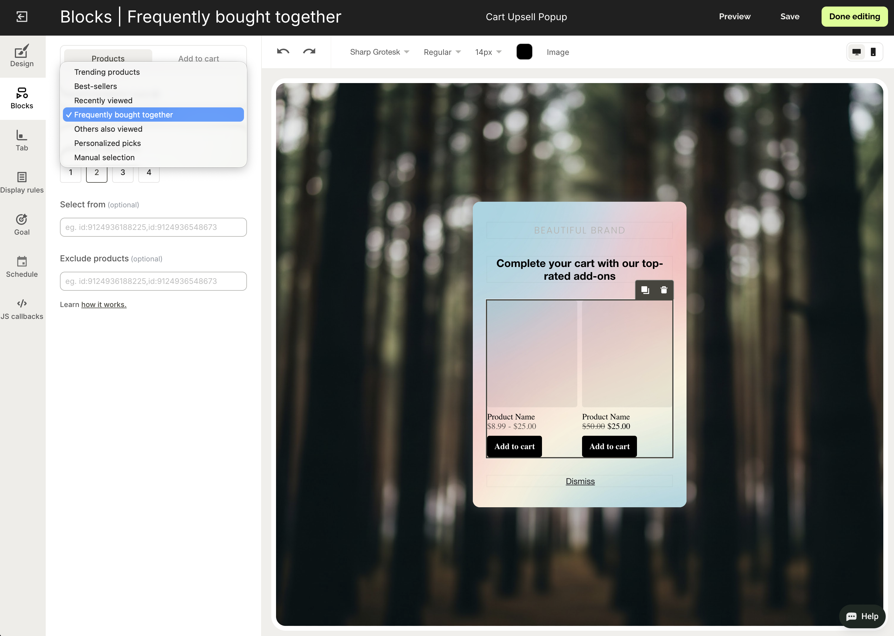 Easy-to-use design editor for matching popups to brand style