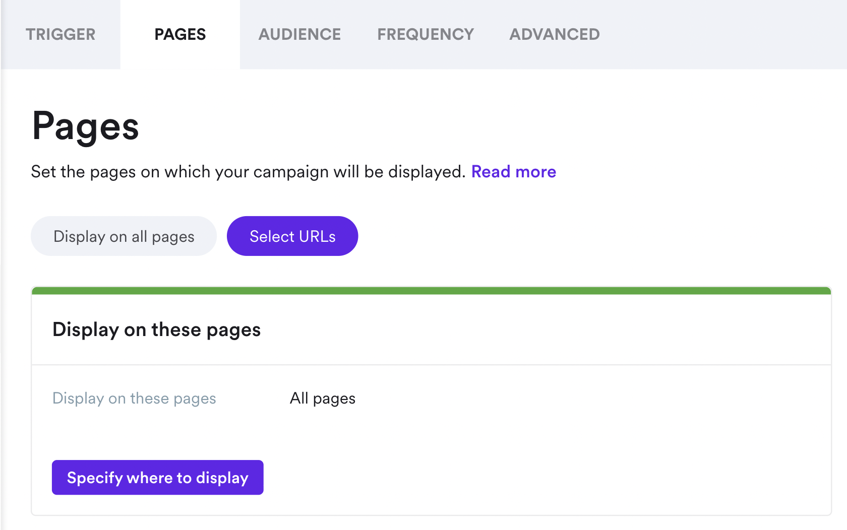 Show this campaign to visitors who view related products by adding the keyword to page targeting (see the example from Wisepops targeting below—that's what the settings would look like for the "serums" campaign above):