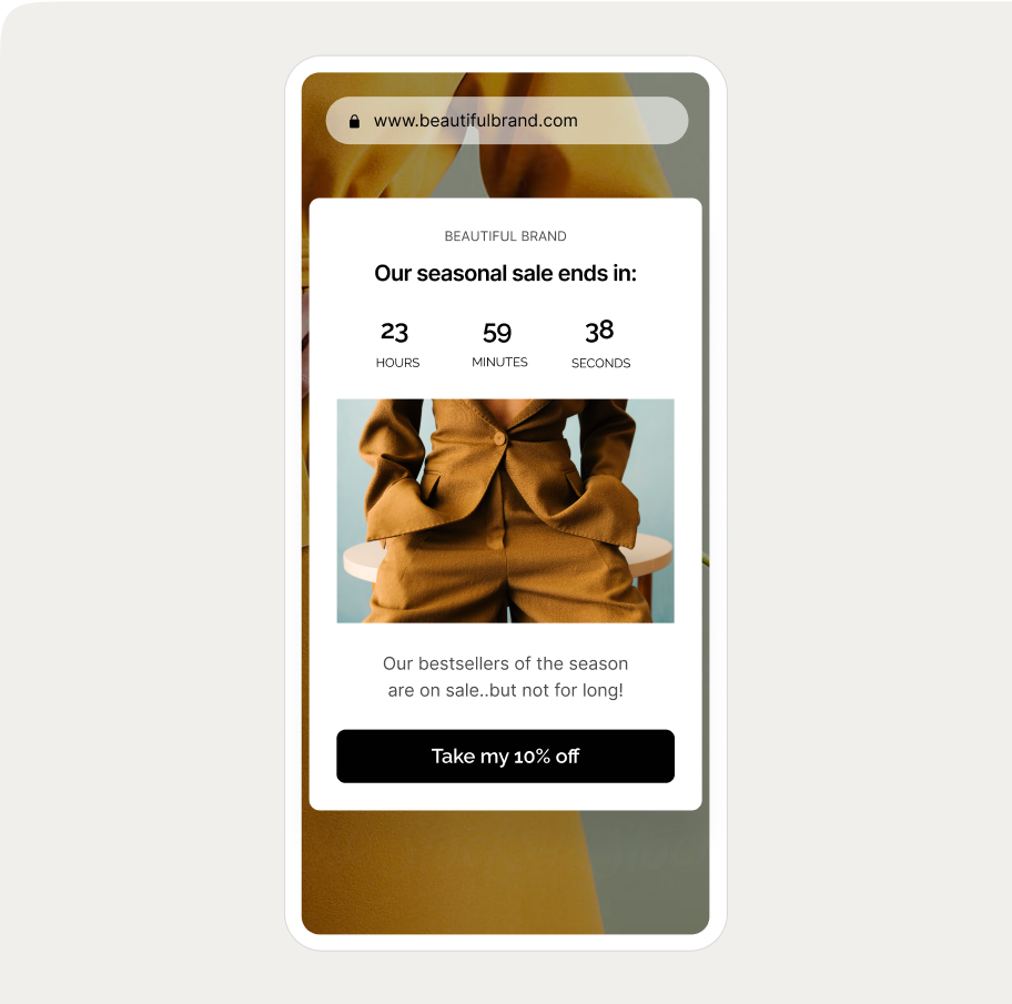 That's why countdowns in popups are a proven way to increase conversion during limited-time sales, Black Friday promos, and other time-sensitive offers.