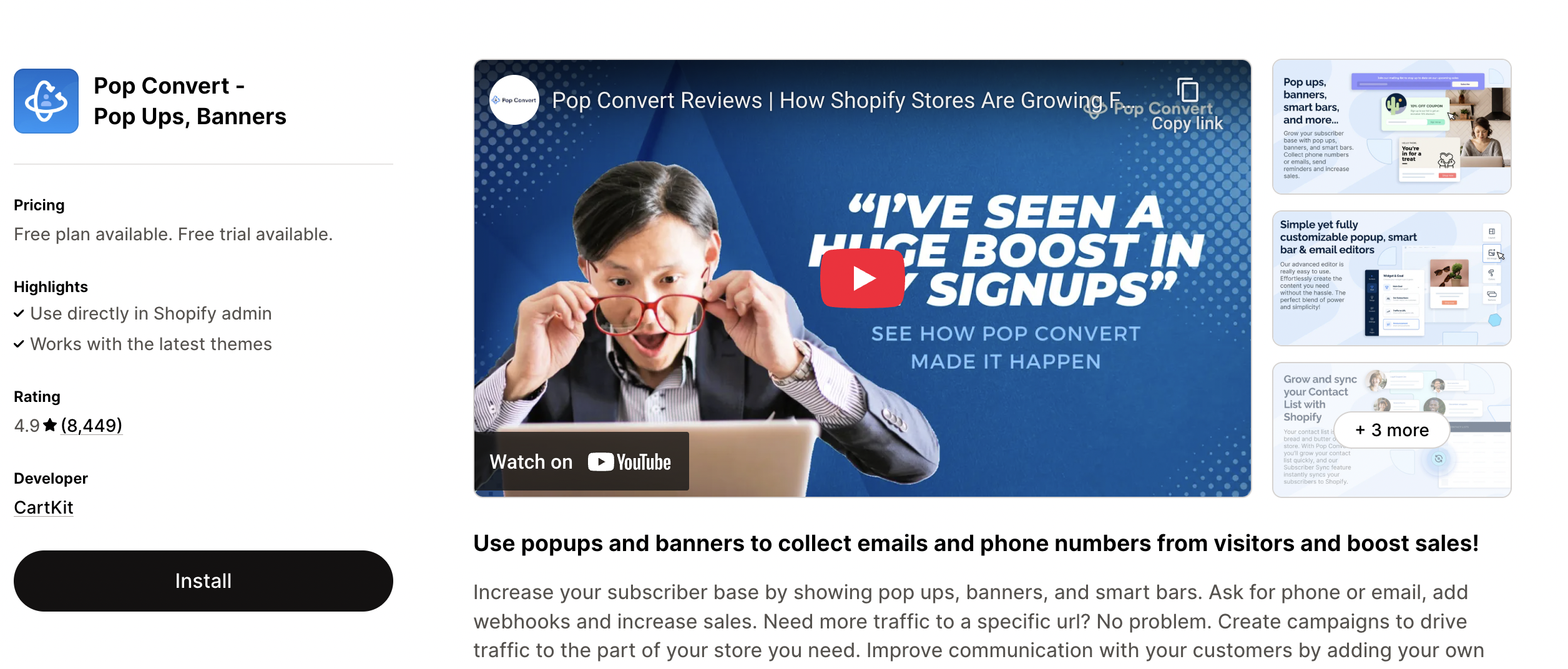 Pop Convert is an affordable exit-popup software designed to build email lists and increase sales through popups, banners, and smart bars. The app is especially powerful for Shopify stores—merchants praise its simplicity, drag-and-drop editor, and exceptional customer support that helps optimize campaigns quickly.
