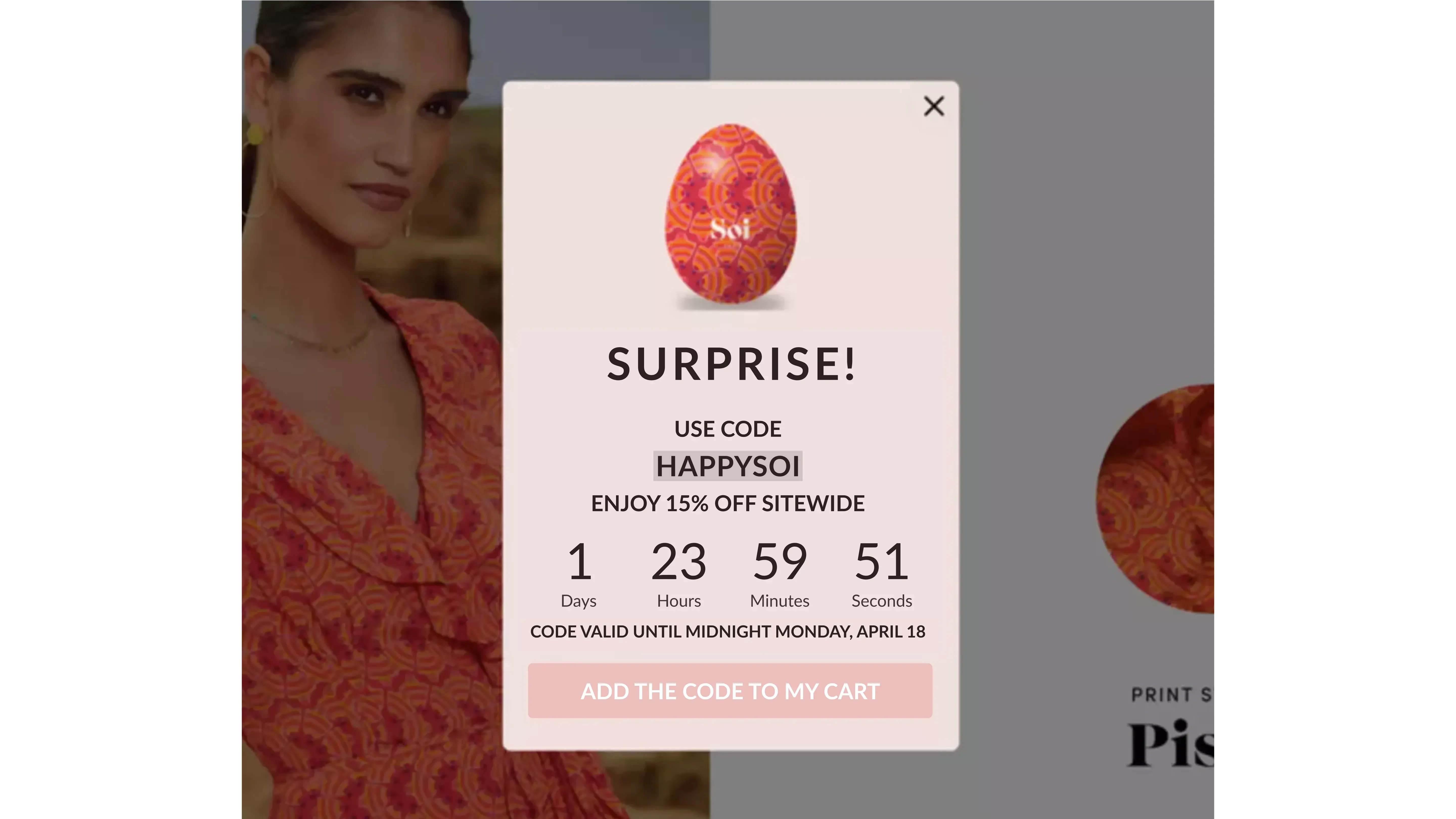 The "eggs" were gorgeous-looking, egg-shaped popups that were added to product and collection pages to encourage shoppers to visit more pages: