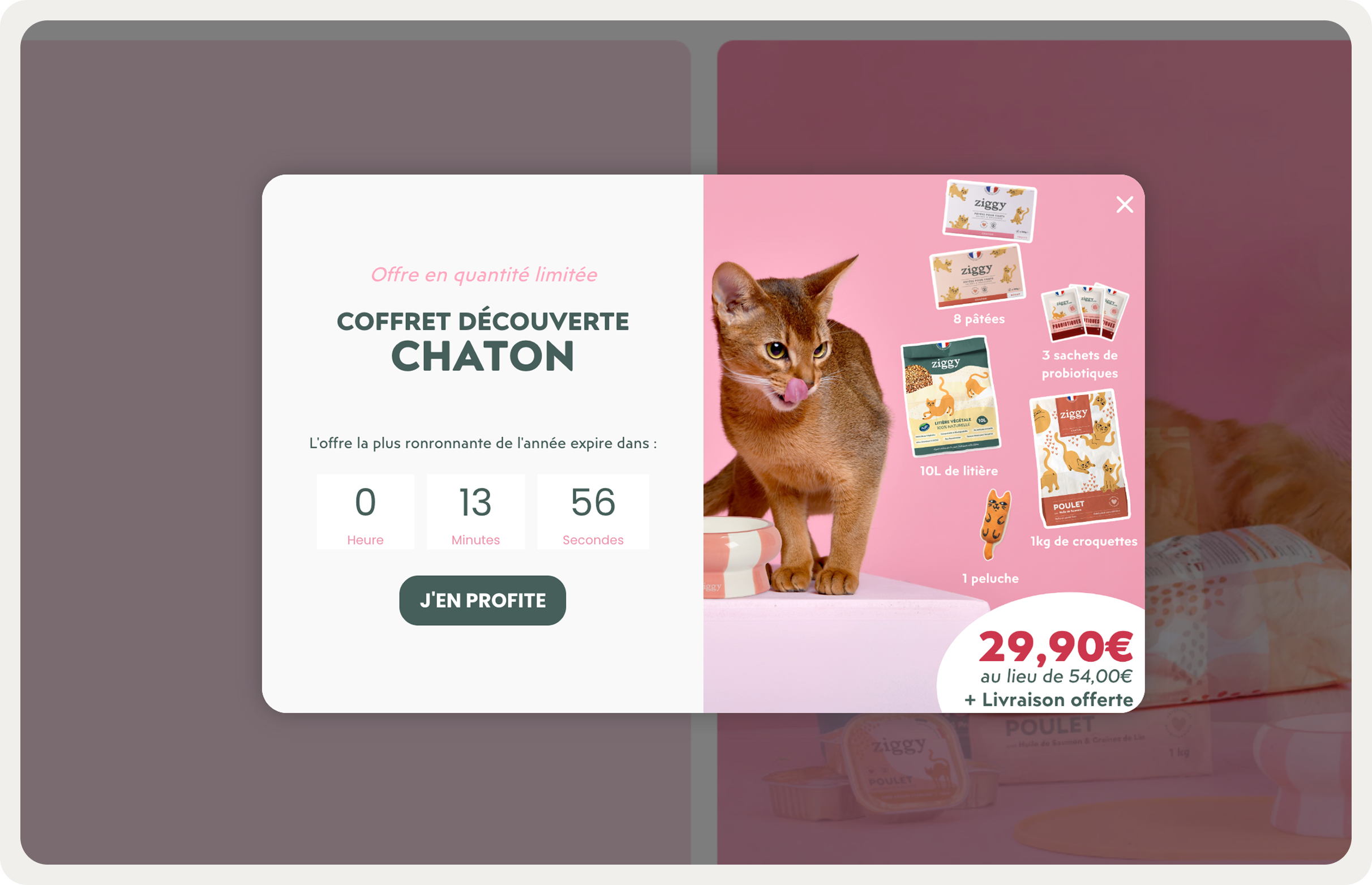 Ziggy also uses this combination for a discovery kit offer — free delivery included, price shown, countdown running.