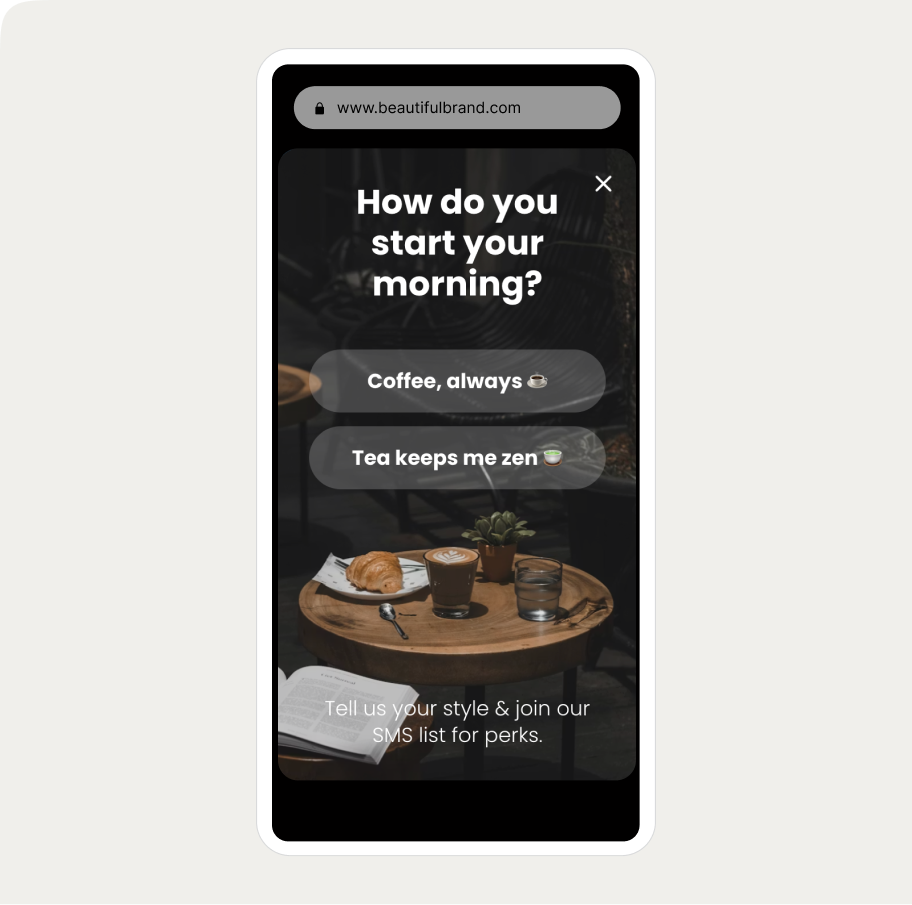 Ice breaker SMS signup popup