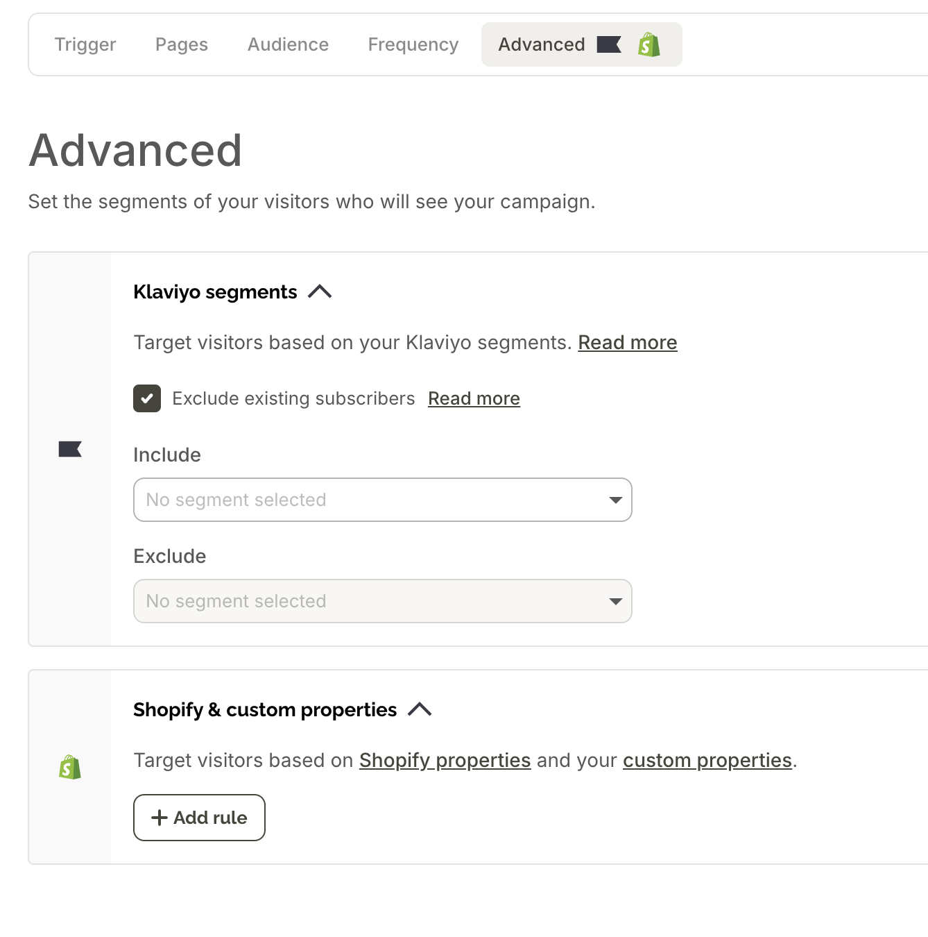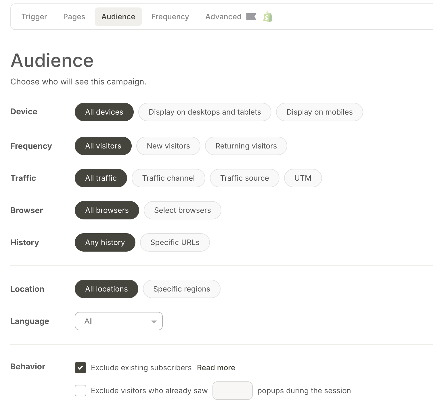 Audience: Who sees the popup based on their characteristics