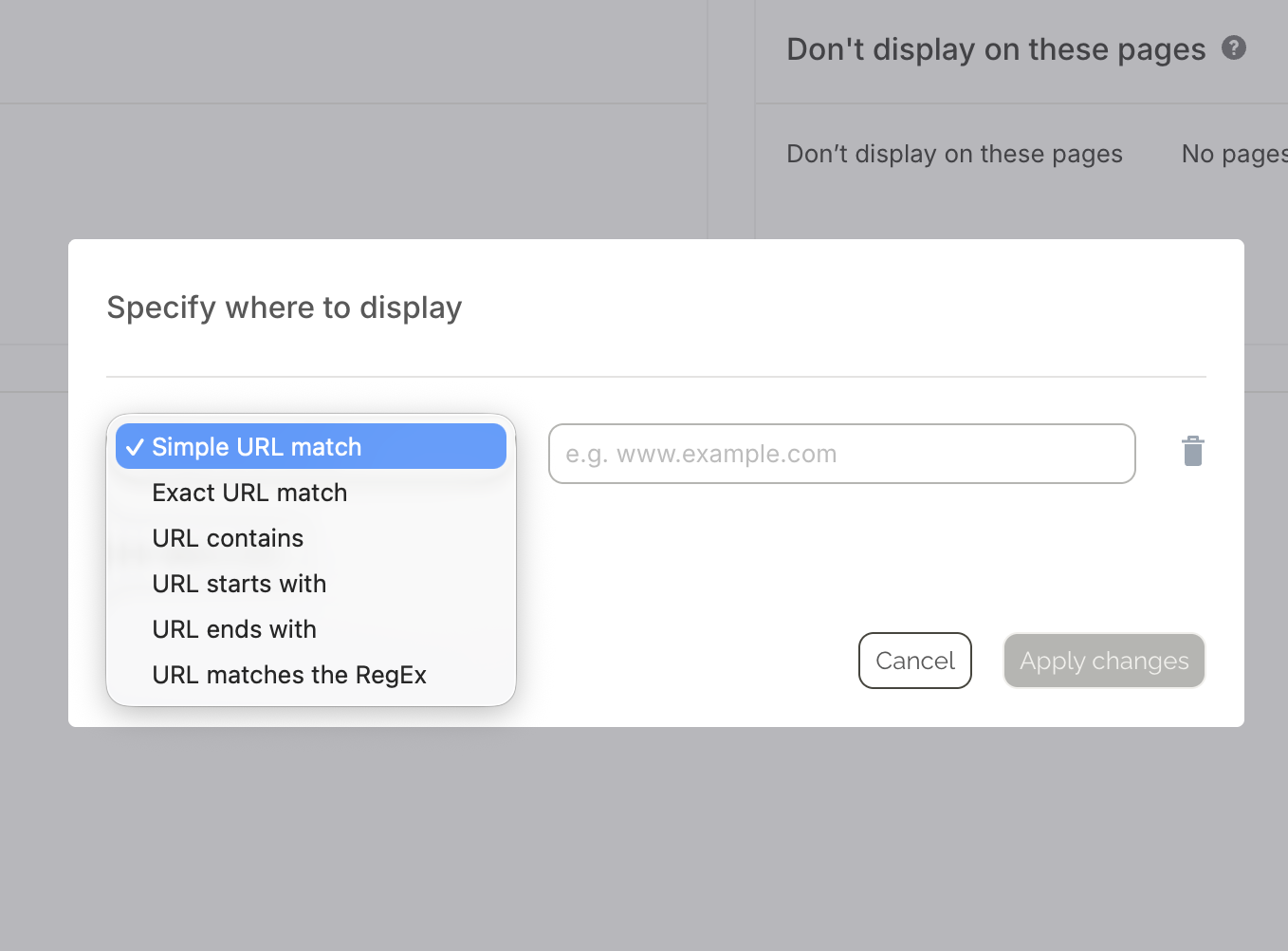 Page targeting: Which URLs display the popup