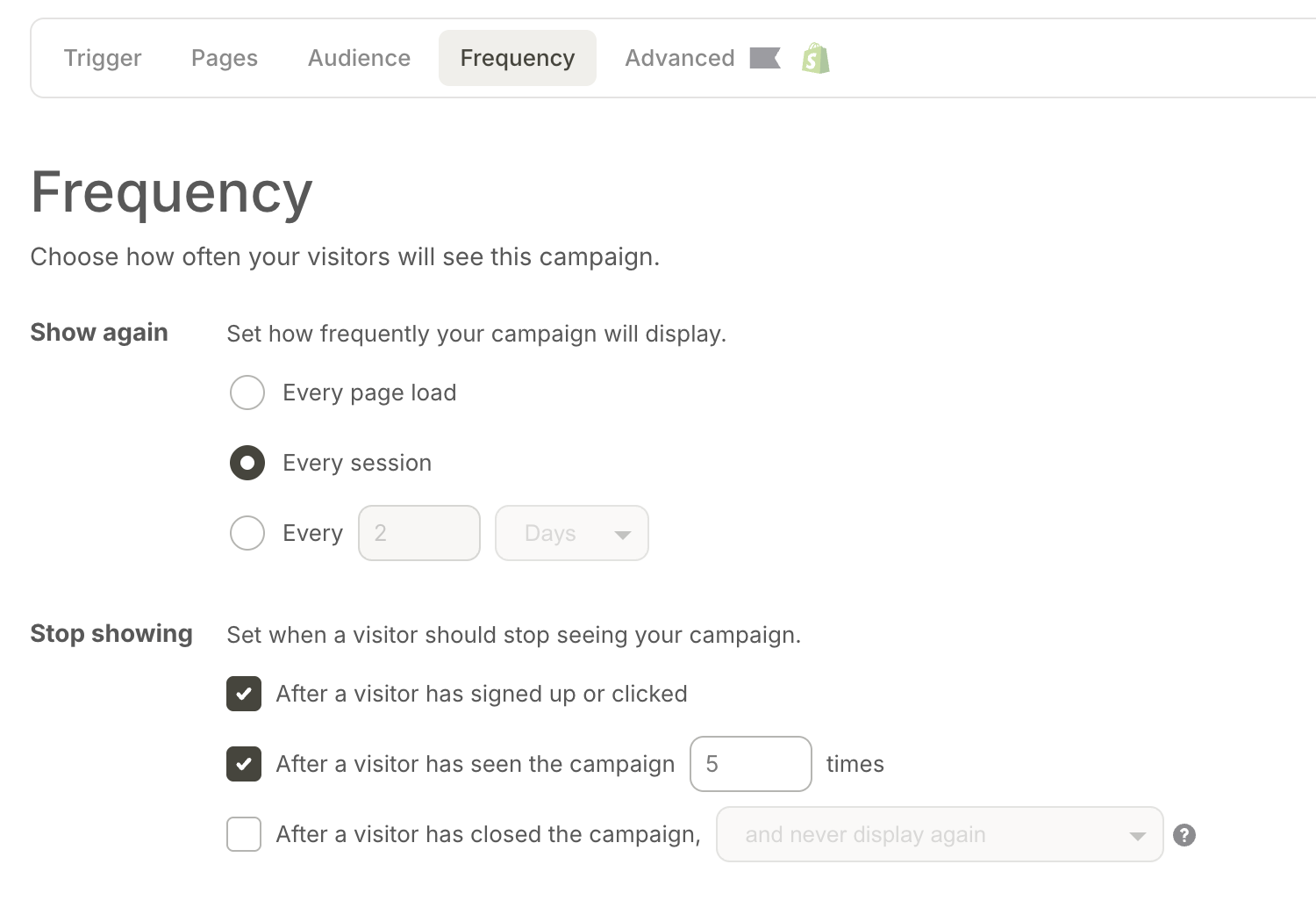 Frequency: How often visitors encounter the popup