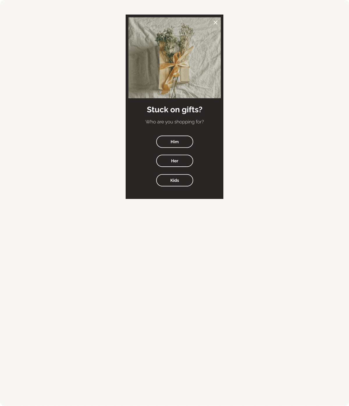 The traditional popup approach is dead simple: show a popup, ask for email, offer a discount, done. Same experience for every visitor.