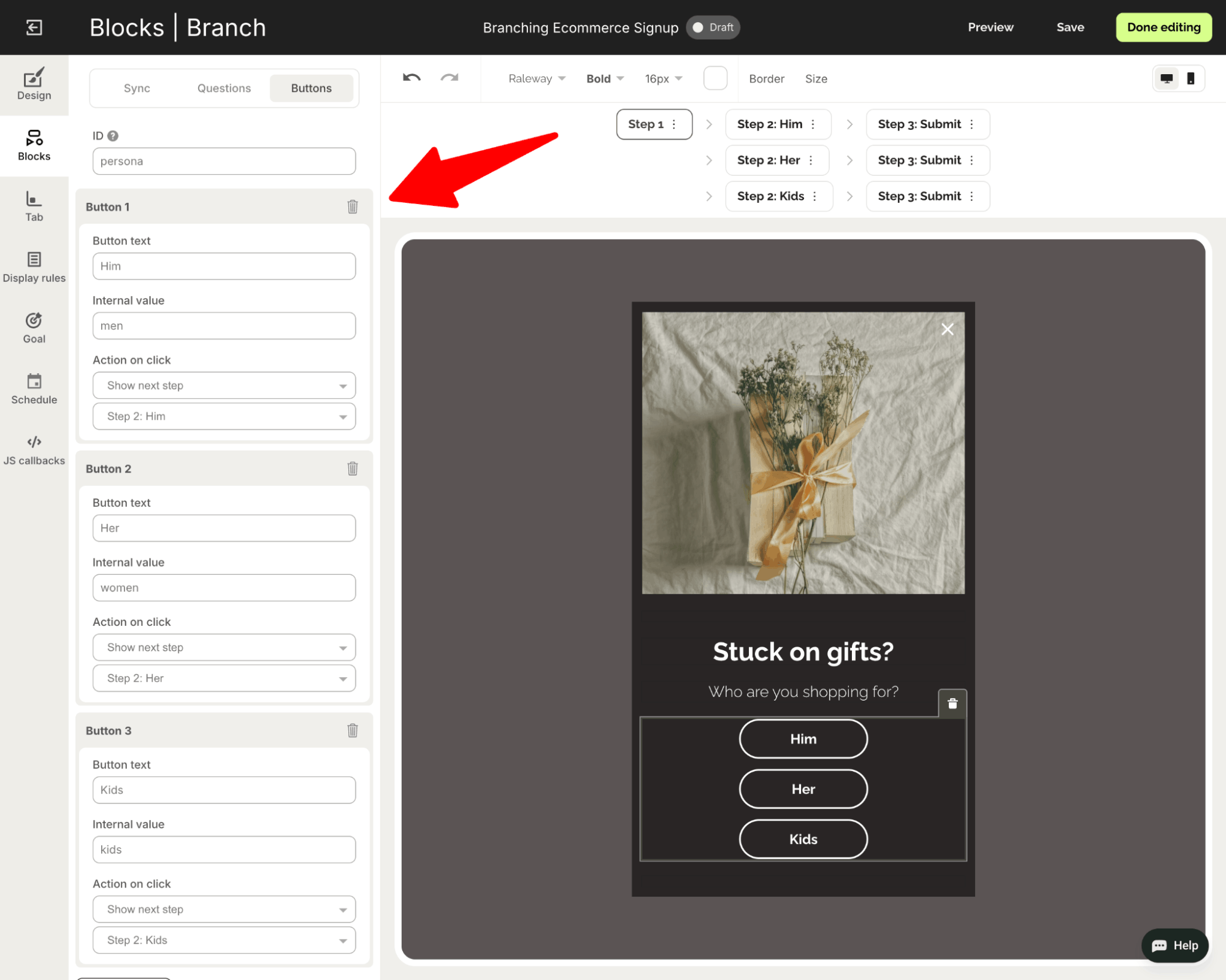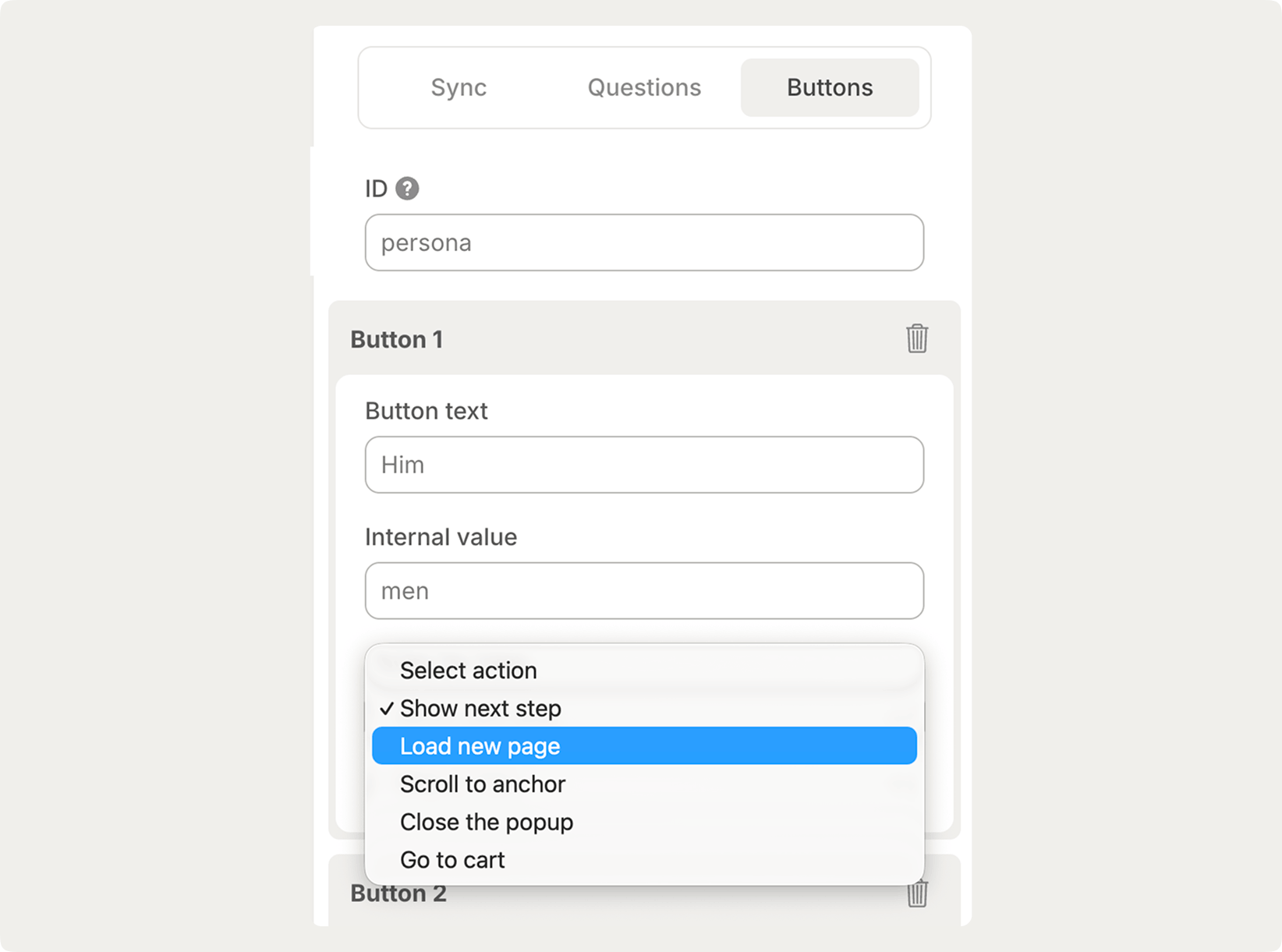 Step 3: Configure your questions and buttons