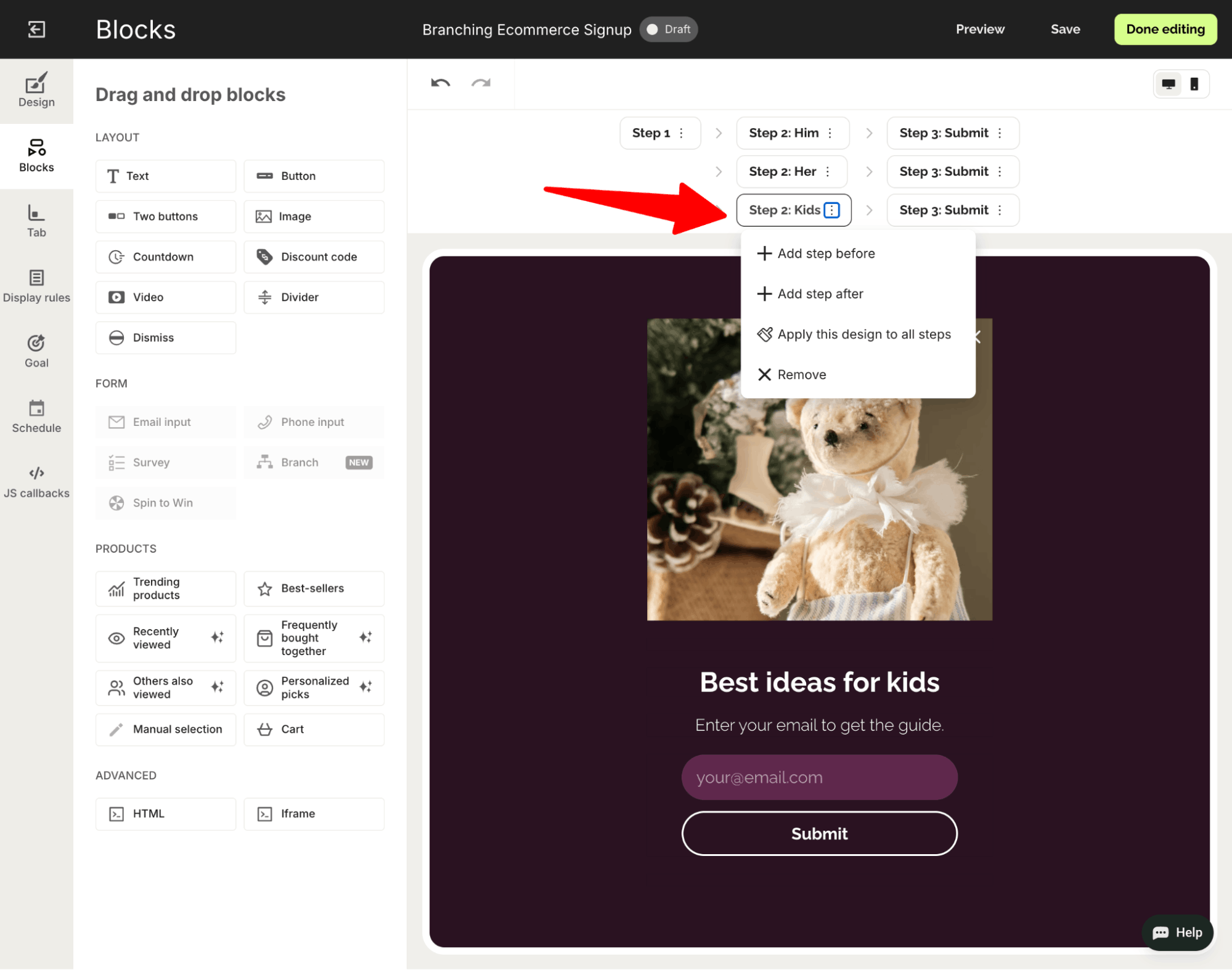 Setting up your first branching popup in Wisepops