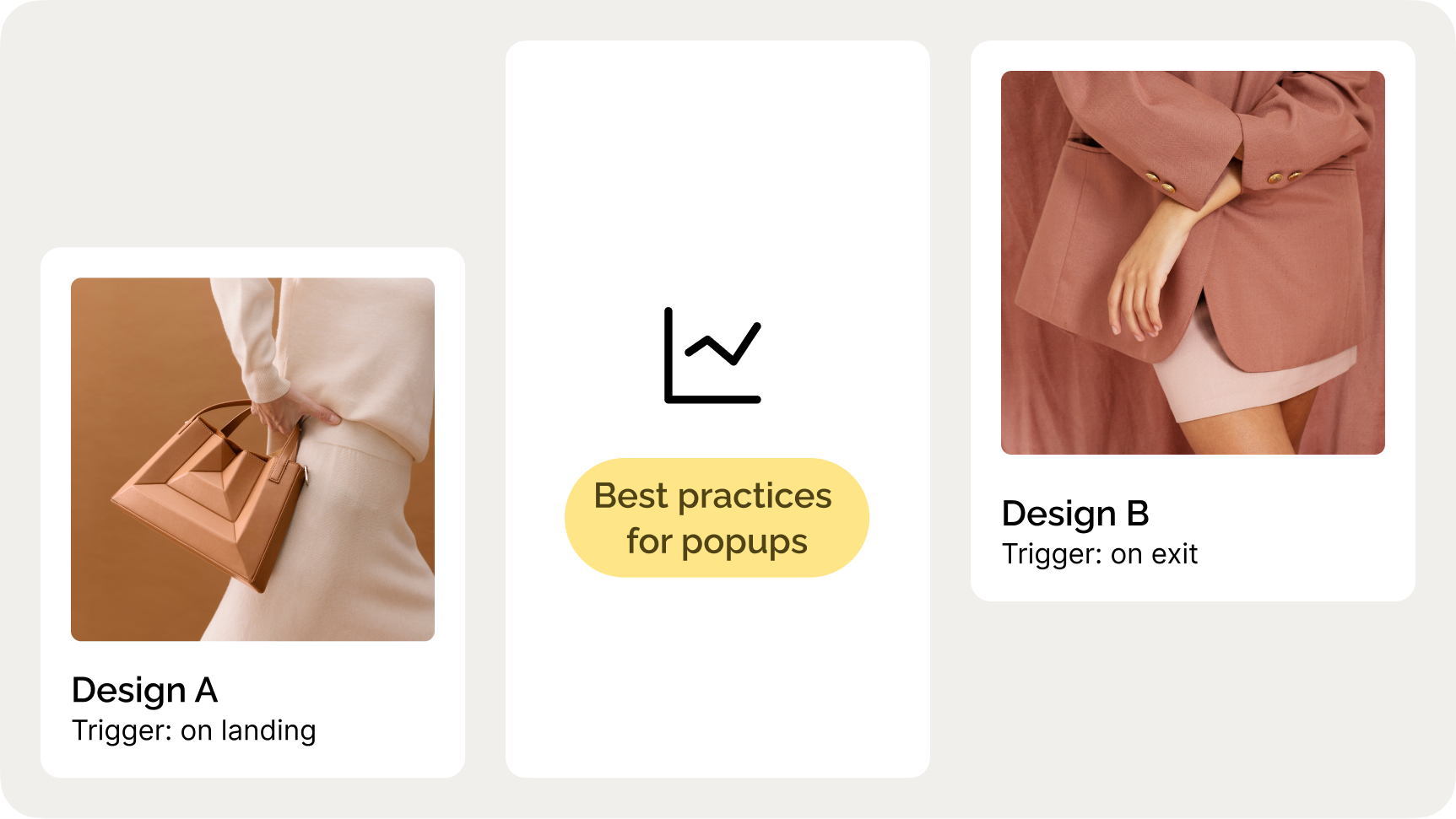 rotating them with other popups regularly (for example, a full-screen format is not the best way to share upsell offers or recover carts on exit)