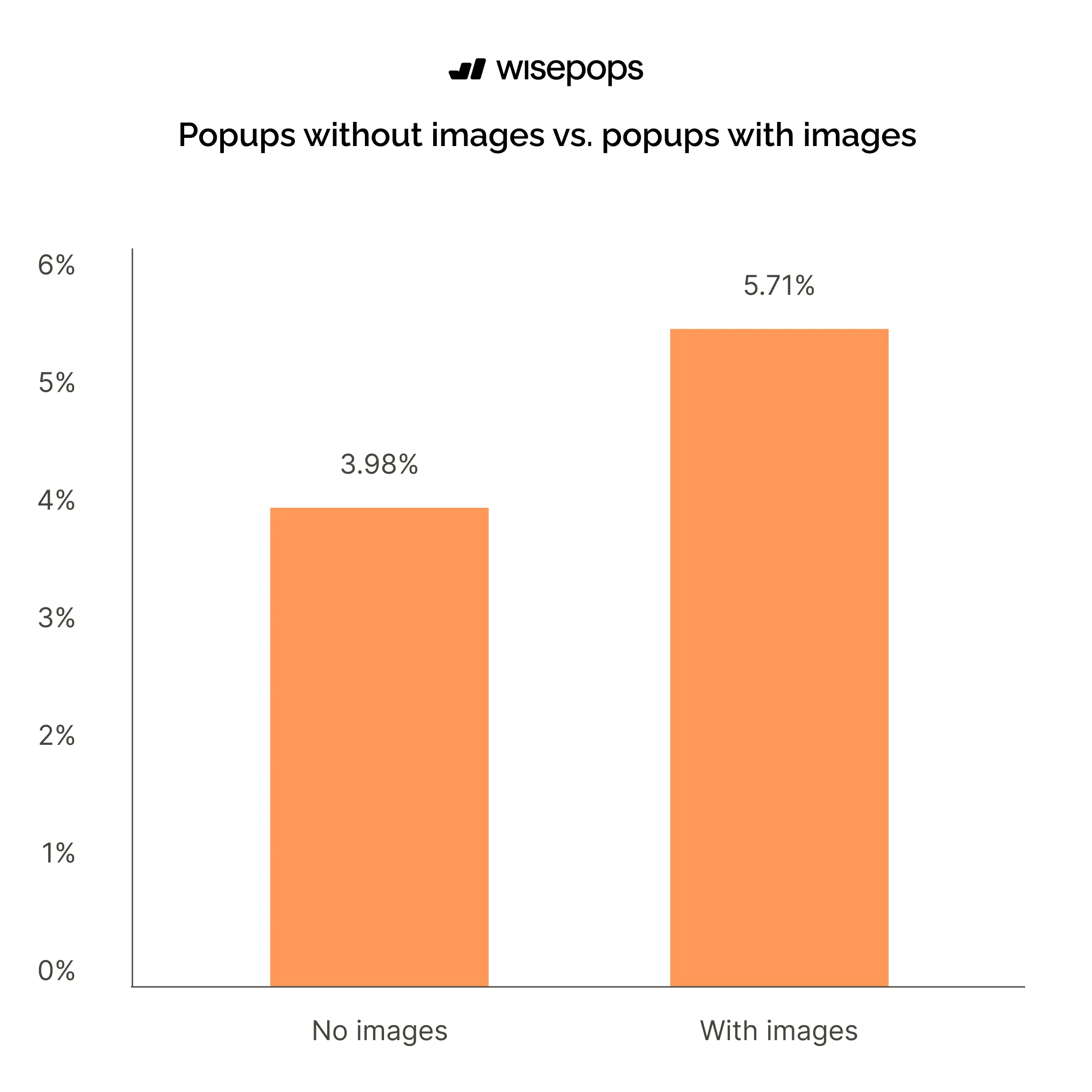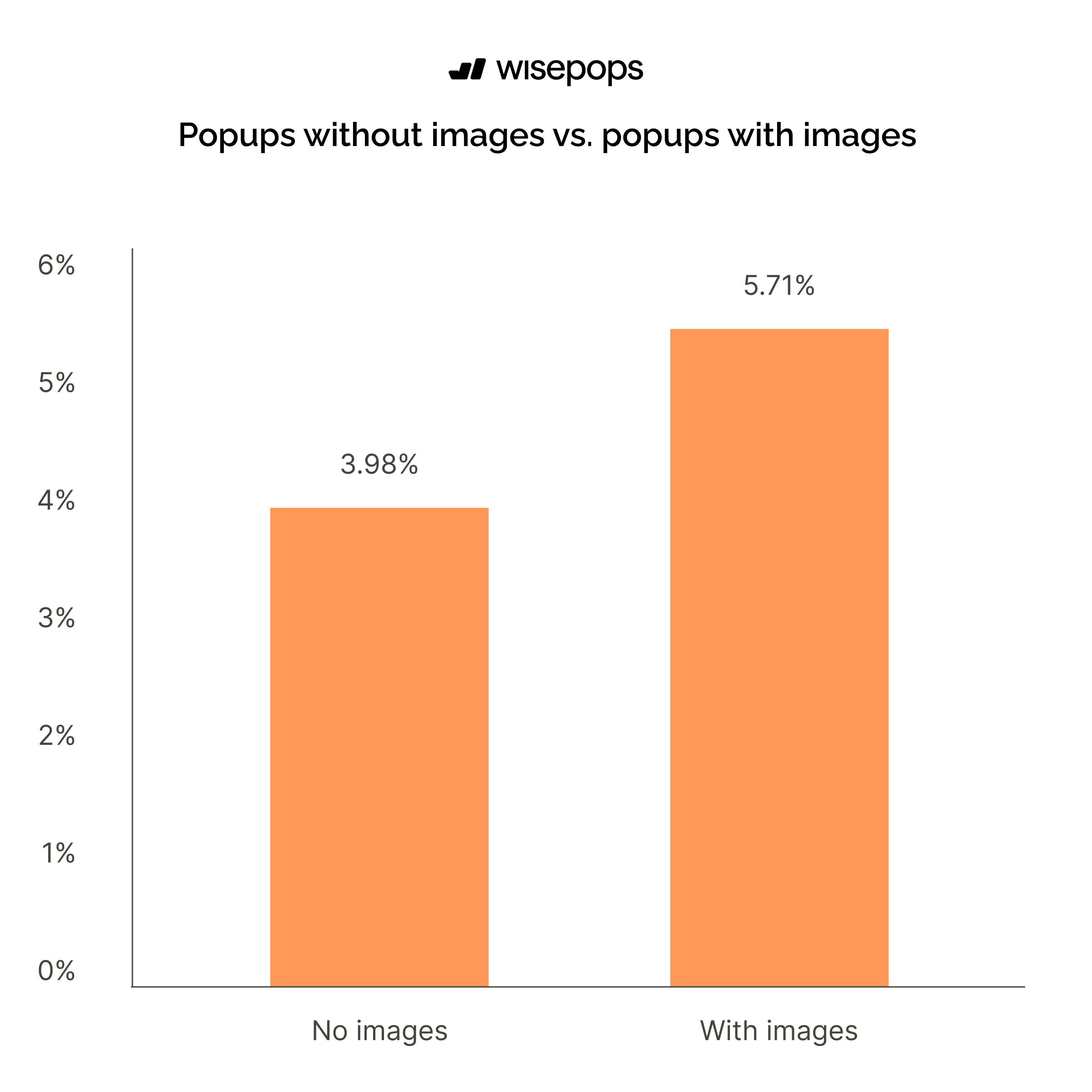 Popups with images achieve a 5.71% conversion rate, significantly outperforming popups without images at 3.98%.