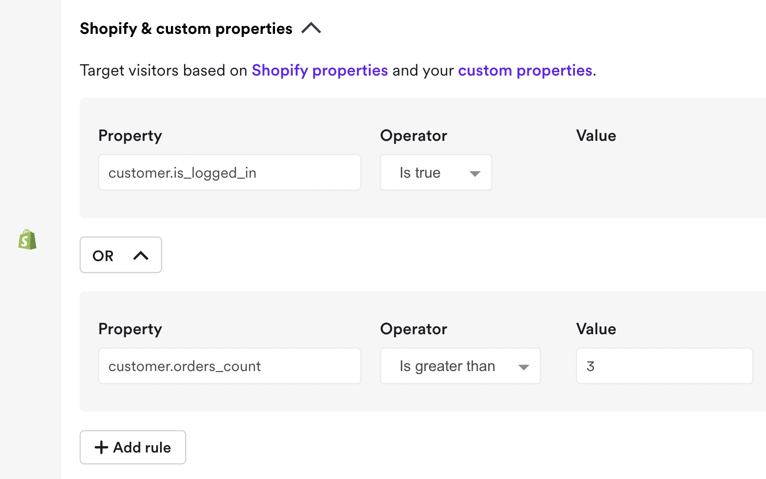 Logged-in vs. unregistered visitor targeting (Shopify only)