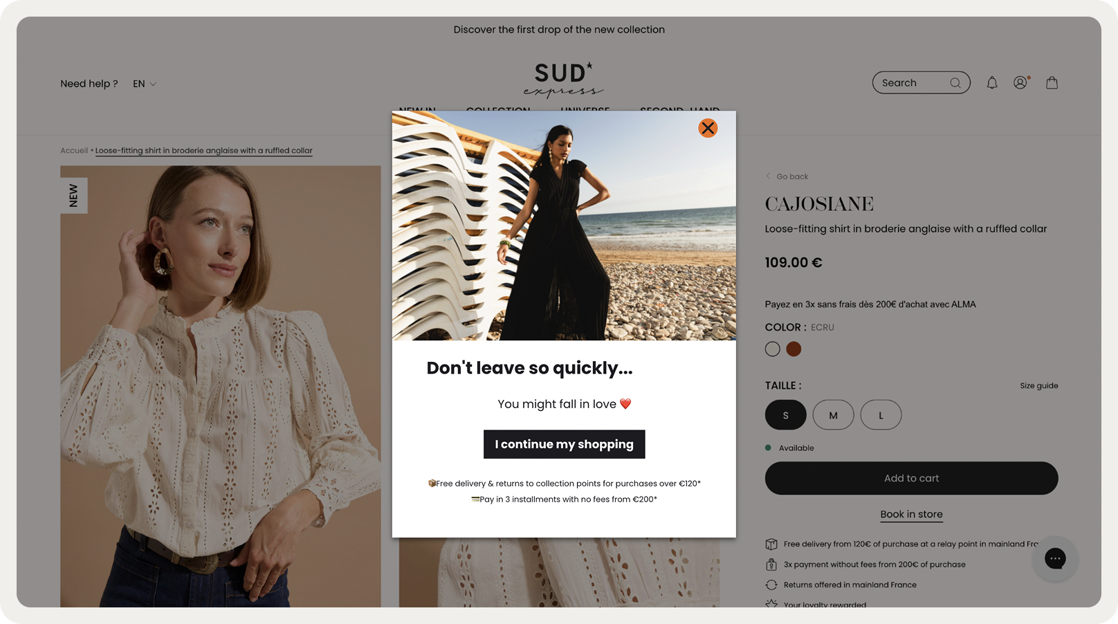 These visitors already know your brand, so your popups should be more focused on driving purchases. Use contextual popups based on browsing history, abandoned carts, or cart content. Use popups to suggest complementary products, personalized bundles, or limited-time offers.
