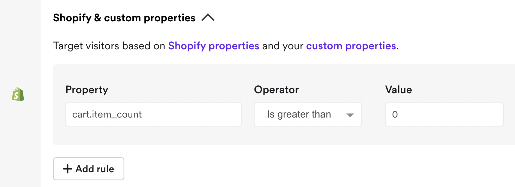 Target visitors based on cart value, specific products, or cart abandonment risk. Say, someone with $100+ in their cart deserves a gift offer, not a 5% discount. Empty cart visitors need product discovery, while high-value carts may need some friction removal.