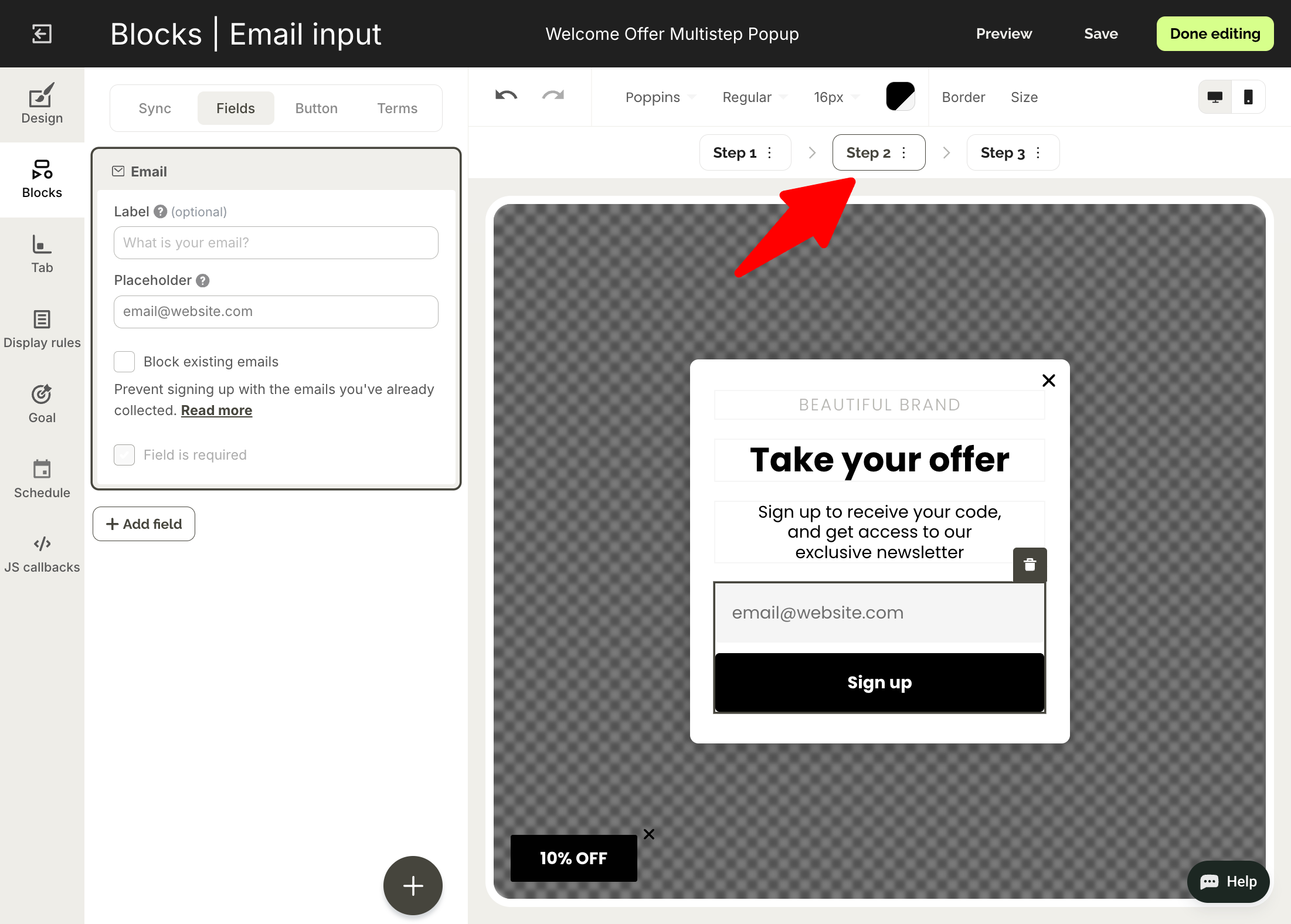 2. Multi-step email capture welcome popup
