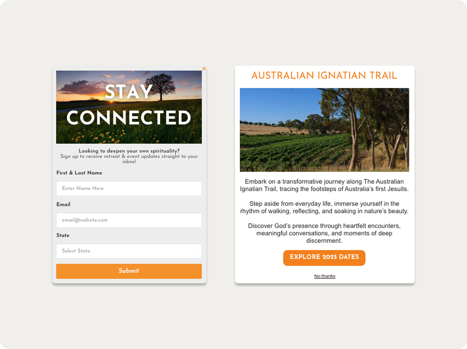 Ardent built visually immersive popups using imagery from the retreat environments, paired with geo-targeting to Australian regions to ensure the campaign only reached visitors who could actually attend.