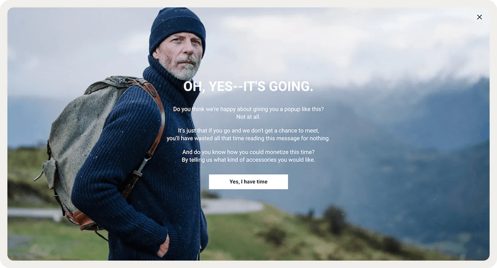 Popups are like ads. People don't like them, so we made them fun. A really good popup doesn't feel like a popup at all.