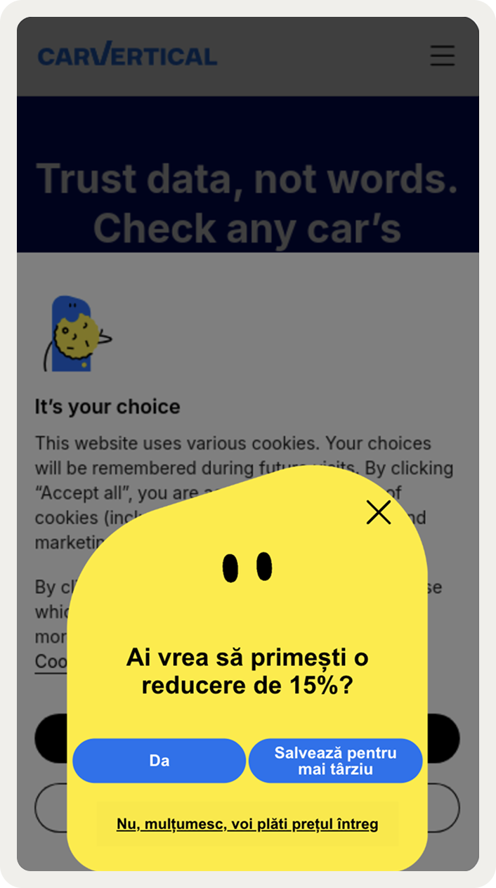 Wisepops provided the flexibility and control carVertical needed for their single-page application, offering precise control over when and where popups are shown across different markets and user segments.