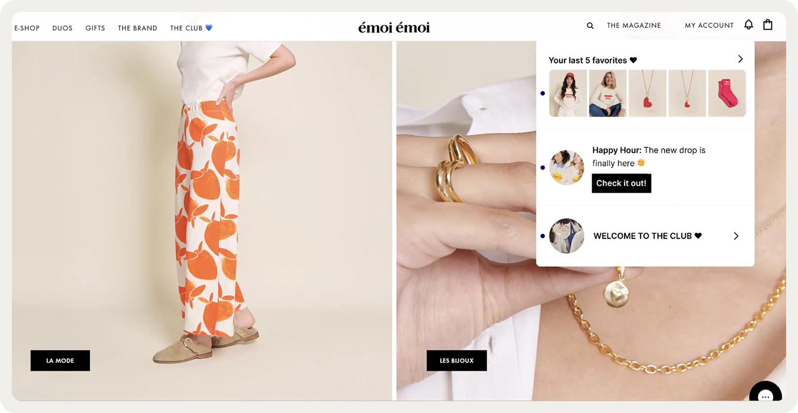 Wisepops empowered us to weave personalized touchpoints throughout the customer journey, seamlessly and without involving our technical team. This tool allowed us to translate the warmth and personal attention of our physical boutiques into the digital space, creating a uniquely émoi émoi online experience that truly resonates with our brand values of love and human connection.