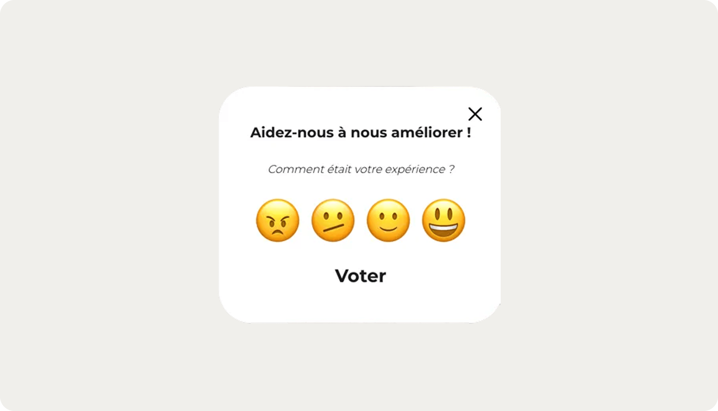 Simple emoji-based feedback collection to continuously optimize the shopping experience and gather actionable customer insights.