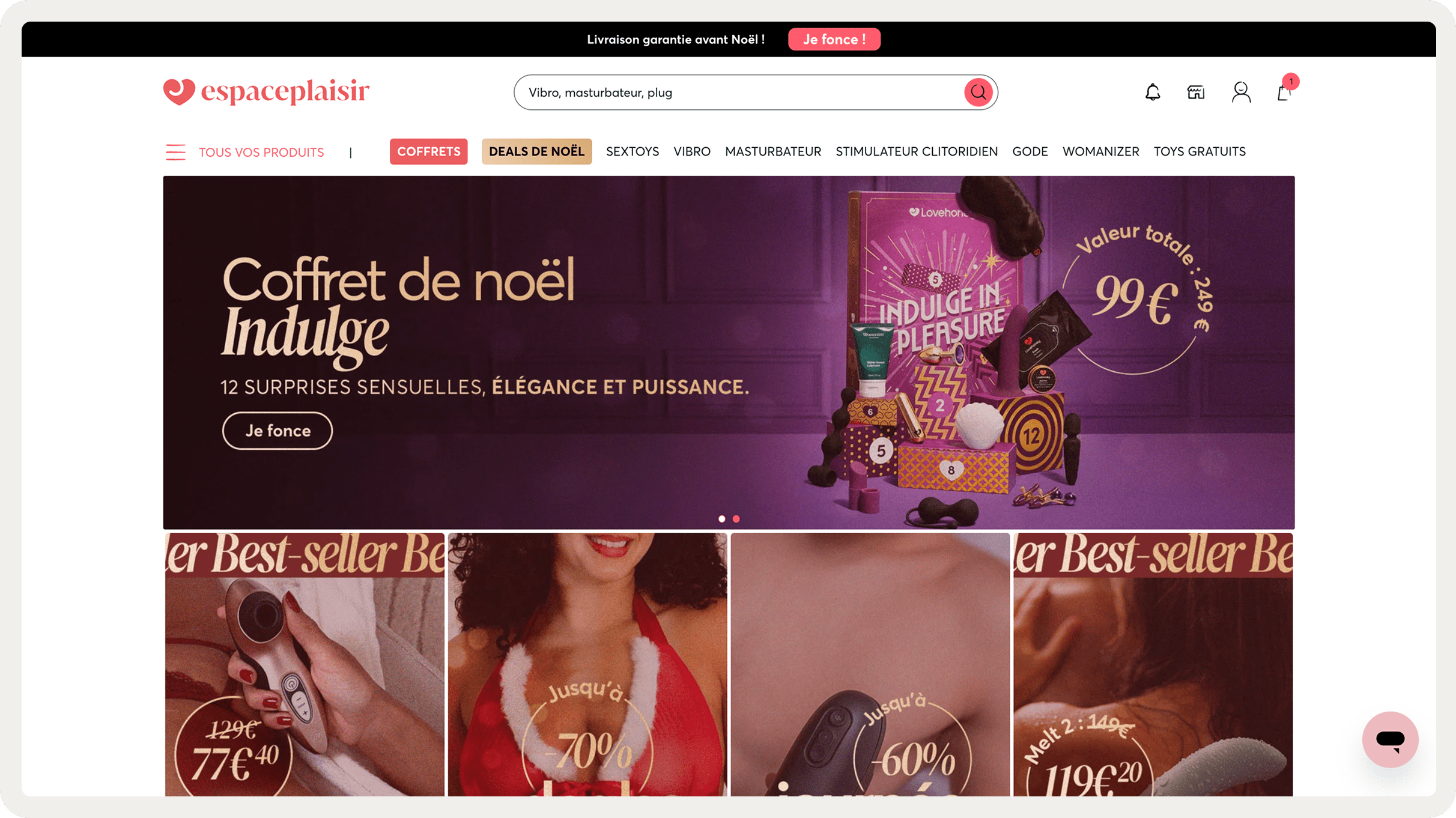 espaceplaisir is a leading French intimate wellness retailer, offering a curated selection of pleasure products, sextoys, and wellness accessories. With a focus on education, inclusivity, and customer empowerment, the brand creates a welcoming digital shopping experience that combines product expertise with sophisticated onsite engagement.