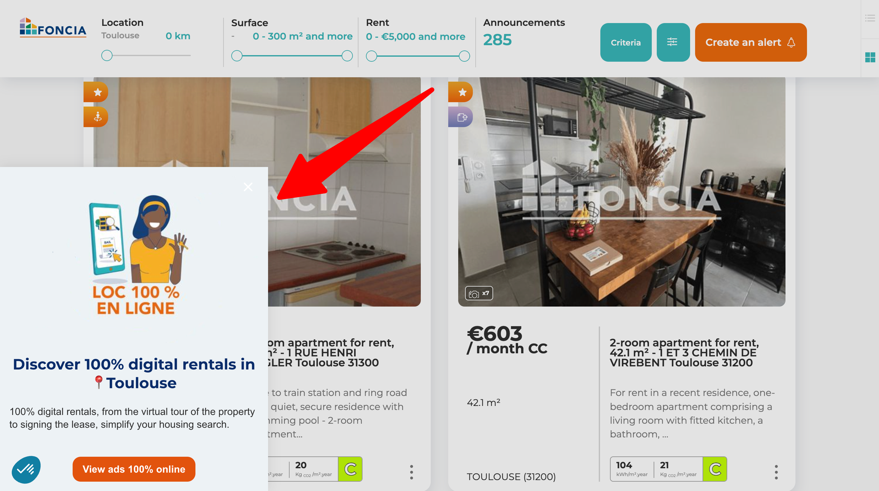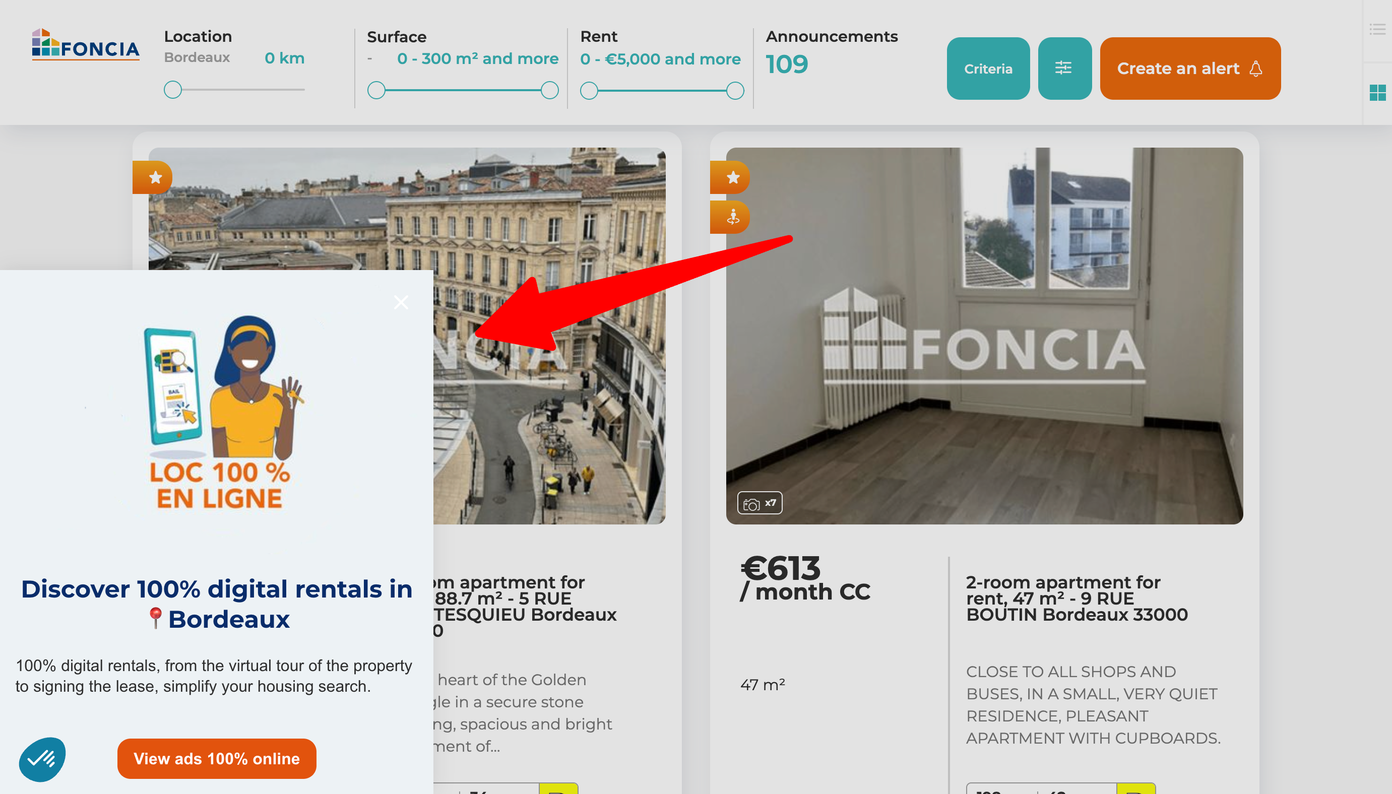 To boost their email list and generate leads, Foncia created targeted popups and forms offering valuable content and services in exchange for user information.