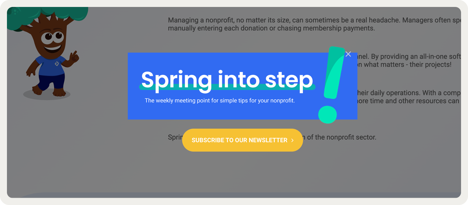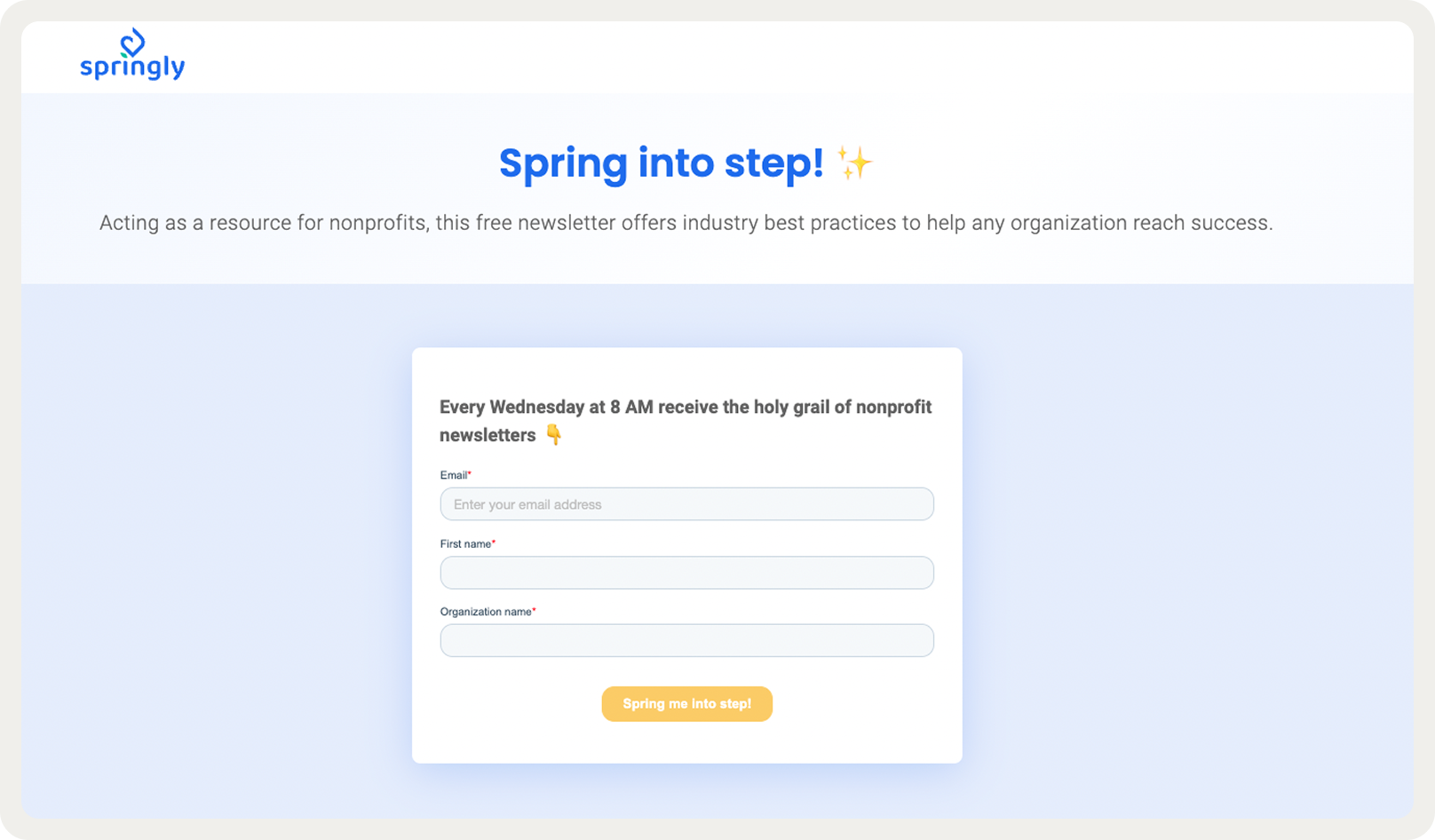 To grow their “Spring into step” newsletter (a lead acquisition channel for the company), Springly used a popup on their blog that directed users to a signup page.