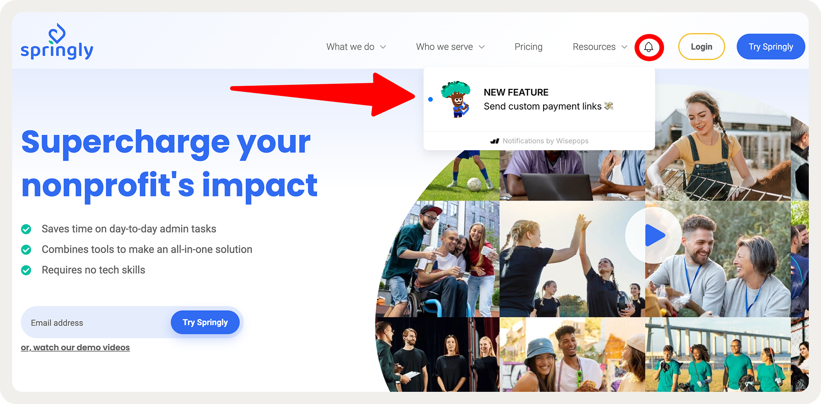 To keep existing users informed and engaged, Springly also uses the onsite feed to announce new product features and improvements. This allows them to communicate directly with users at the right moment—when they're actively using the site—without relying on email.