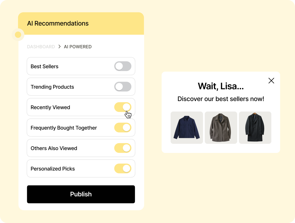 Dynamic triggers : Display popups at the perfect moment - when visitors leave, scroll or view specific pages.