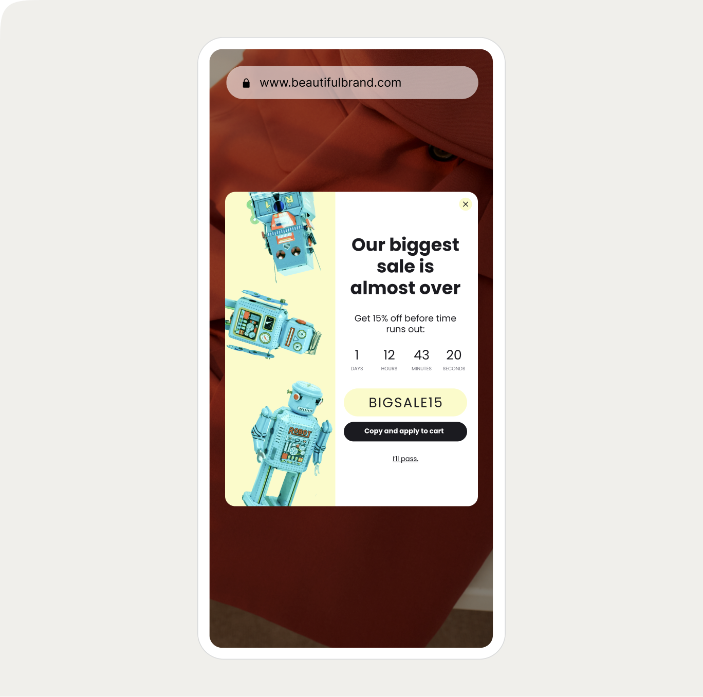 Inform visitors about ongoing sales to drive traffic and boost conversions during promotional periods