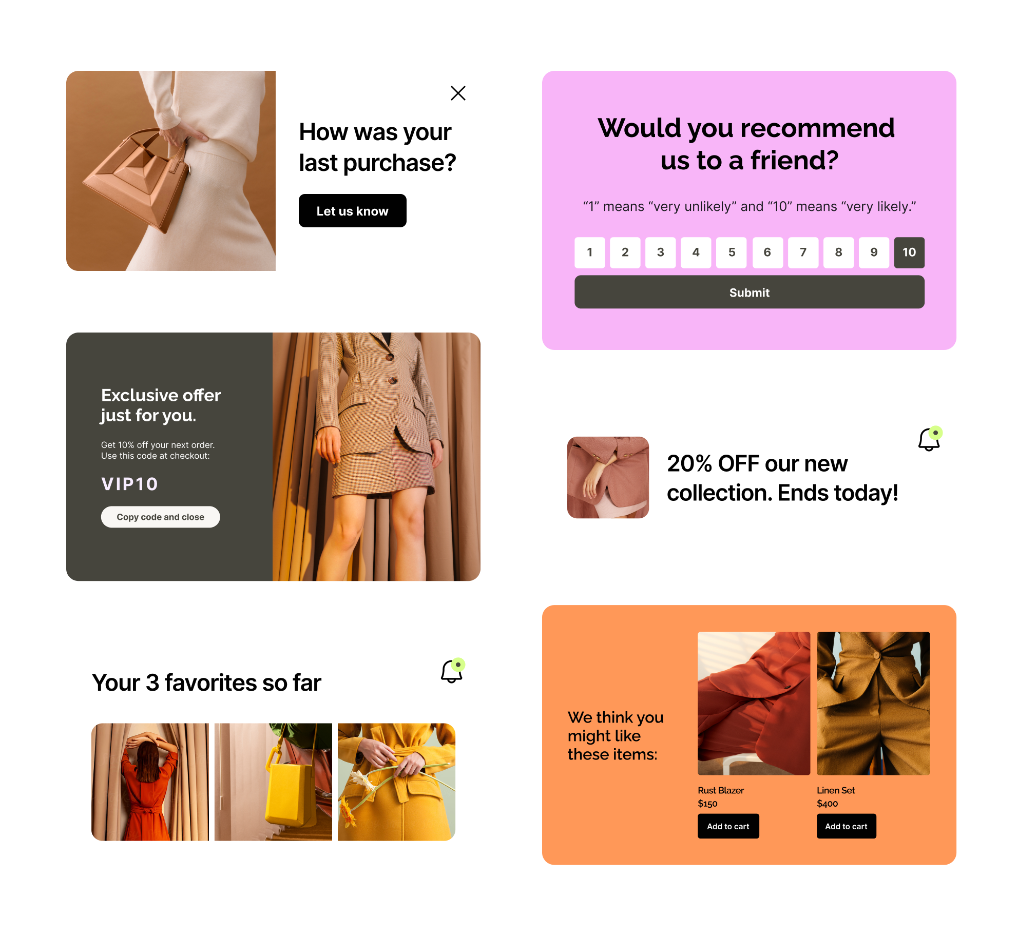 Whether you need to grow subscribers, recover carts, or promote new collections, you’ll find ready-to-launch designs that are already optimized for engagement and conversion. Pick a template, customize it, and go live in minutes—no developer help needed.